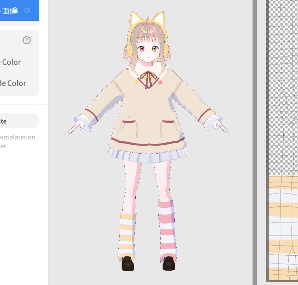 Vroid Studio 안에서 러프하게 작업을 해 준 모습입니다. 제 경우 이 단계에서는 와.. 이딴 게 옷이라고? 싶을 정도로 매우 너덜너덜한 상태가 되는 게 보통입니다.